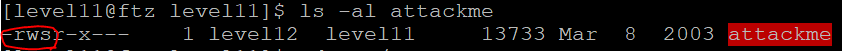 (SetUID가 걸려있는 attackme 실행파일 !)