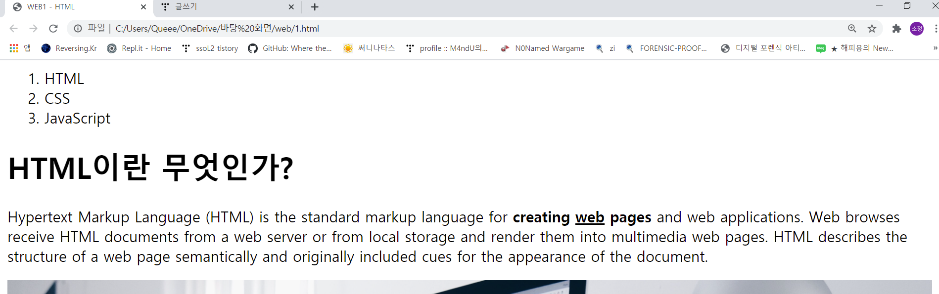 - <html> 태그 위에는 관용적으로 이 문서에는 HTML이 담겨 있다는 뜻으로 <!DOCTYPE HTML> 표현