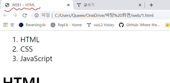 - HTML을 본문을 <body>, 본문을 설명하는 태그는 <head>로 묶기로 약속함