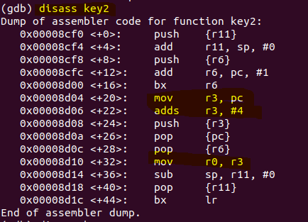 key2()도 r0는 r3에서 왔고, r3는 pc+4에서 옴